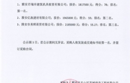 本項目評審活動于2021年2月19日圓滿結束,現將評審情況公示如下:1、雅安市浩銘建設工程有限公司;報價:4614594.70元;得分:96.1;排名:第一名2、四川省名興建筑有限公司;報價:5309632.20元;得分:94.8;排名:第二名3、四川源信建筑工程有限公司;報價:5336891.50元;得分:94.2排名:第三名4、中標星辰建筑工程有限公司;報價:4888150.40元;得分:92.9排名:第四名公示期3日,若公示期間無異議,招標人將發放中標通知書給第一名,并簽訂合同。...